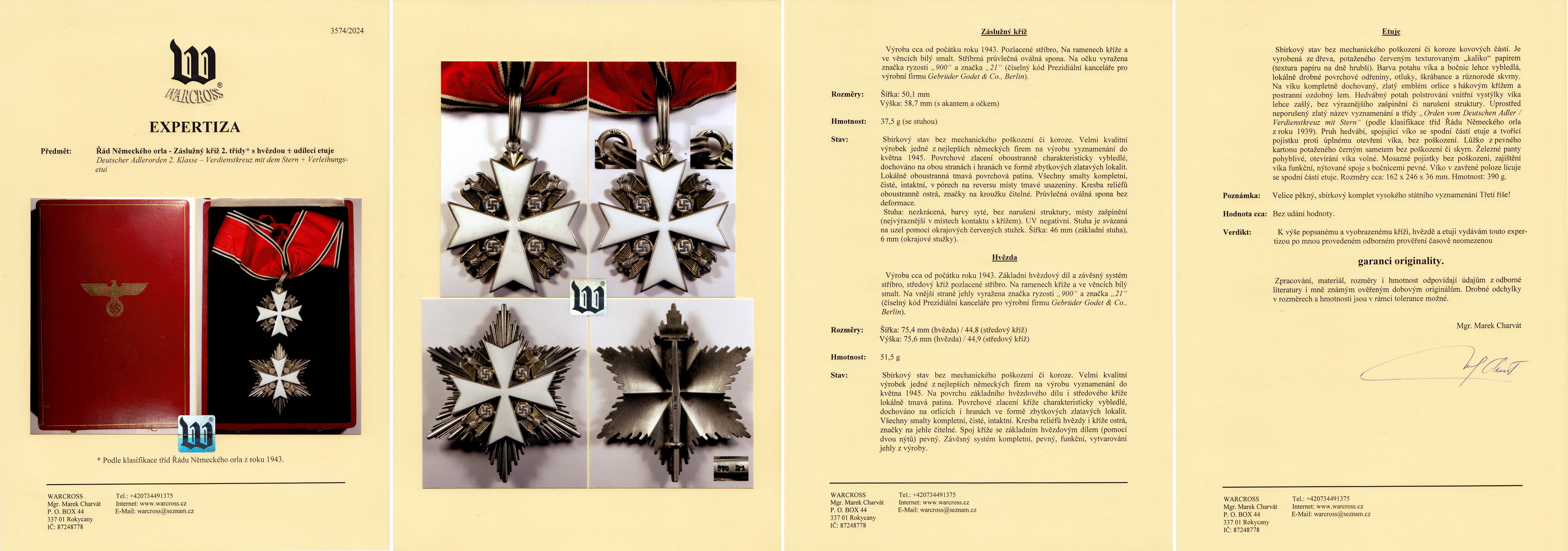 Před odesláním zásilky mě prosím informujete na E-mail warcross@seznam.cz – sdělte, co konkrétně hodláte poslat – vystavuji expertizy pouze na NĚMECKÉ ODZNAKY A VYZNAMENÁNÍ Z OBDOBÍ LET 1933 – 1945. Rozhodně neposílejte jiné militarie (nepřijímám chladné zbraně, uniformy, výstrojní součásti, opaskové přezky, rukávové pásky apod.)! Neposílejte rovněž čepicové odznaky s výjimkou SS (viz níže). Posoudit a vystavit expertizu mohu konkrétně na tyto německé odznaky, vyznamenání a dokumenty: